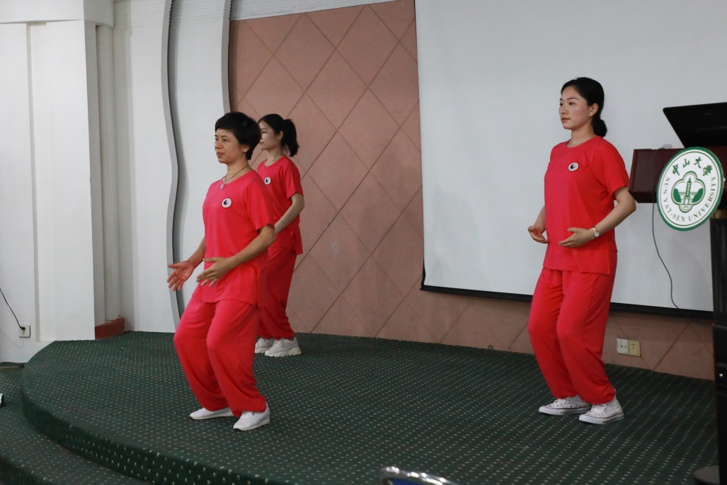 培训还邀请了我校附属第三医院急诊科团队和中医科团队作急救知识科普和八段锦教学。参会人员在医护人员的指导下现场学习了心肺复苏术、伤口包扎及气道异物梗阻处理即海姆立克急救法等操作,进行了八段锦集体习练。