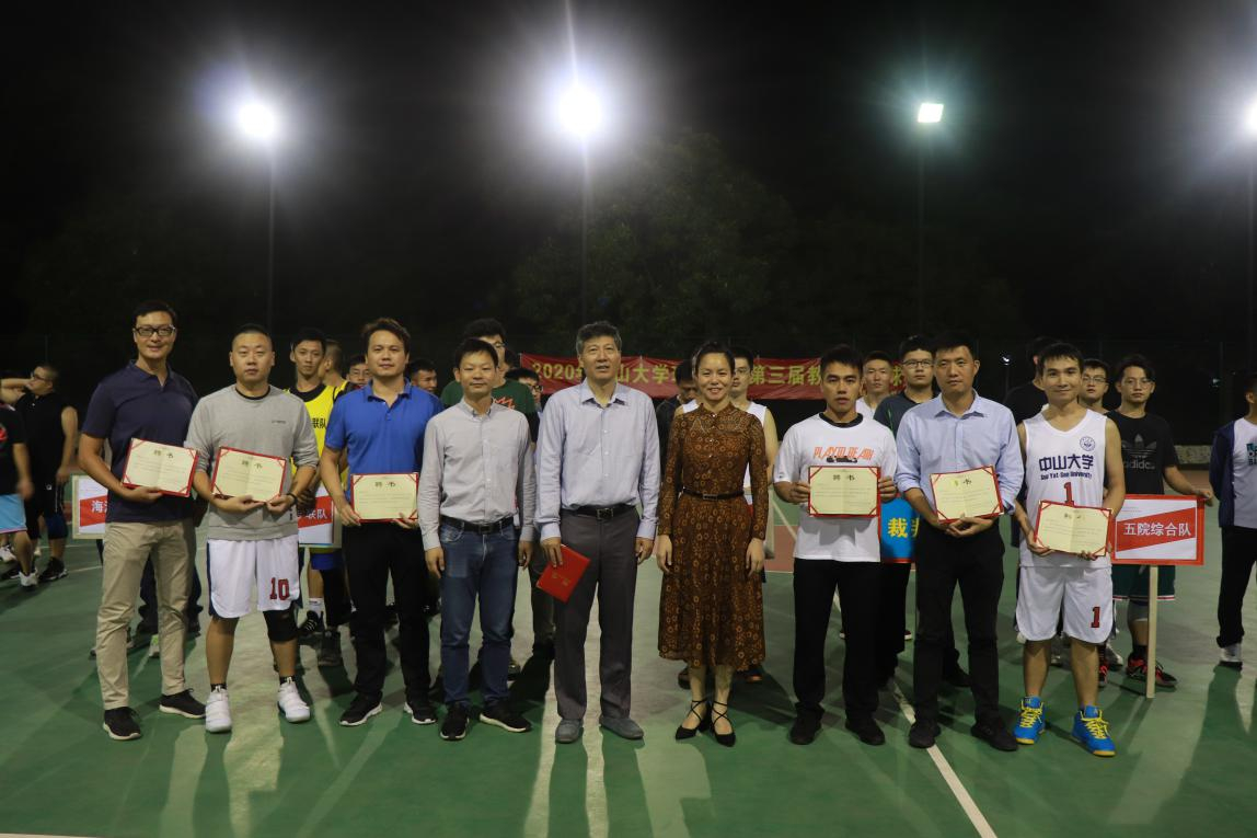 珠海校区教职工篮球俱乐部会长、海洋工程与技术学院党委书记贾延江,附属第五医院工会副主席宋丽青,海洋科学学院党委副书记廖喜扬参加比赛开幕式。