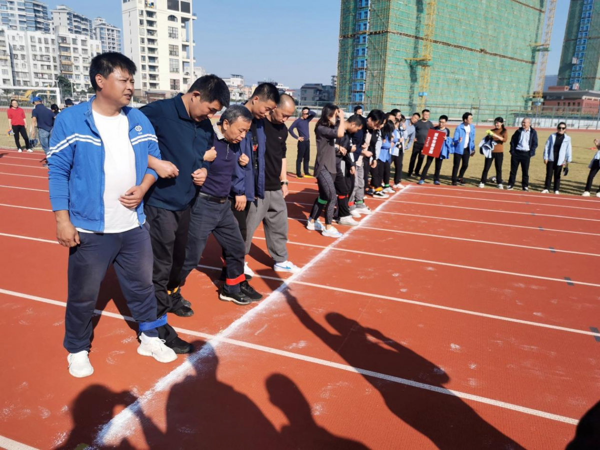 随后漆小萍主任宣布“珠海校区第十六届教职工趣味运动会”比赛正式开始。本次比赛设拔河个人项目1个,旱地龙舟、五人六足、同心鼓击球、集体仰卧起做和拔河等团体项目5个。项目设置上趣味与智慧并存,竞技与挑战同在;项目组织上既紧凑又张弛有度,正式比赛前还组织了集体热身活动,以避免教工们受到不必要的运动伤害。