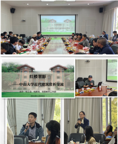 为增进新入职教师对中山大学历史、文化和精神的了解认同,加强青年教师之间的沟通交流,11月26日中午,由校工会、文献与文化遗产管理部、党委教师工作部联合举办的“红楼翠影——中山大学近代建筑赏析交流”活动在广州校区南校园梁銶琚堂第一会议室举行。校工会常务副主席许东黎、党委教师工作部部长罗燕等出席活动。来自各院系30余位青年教师参加活动。