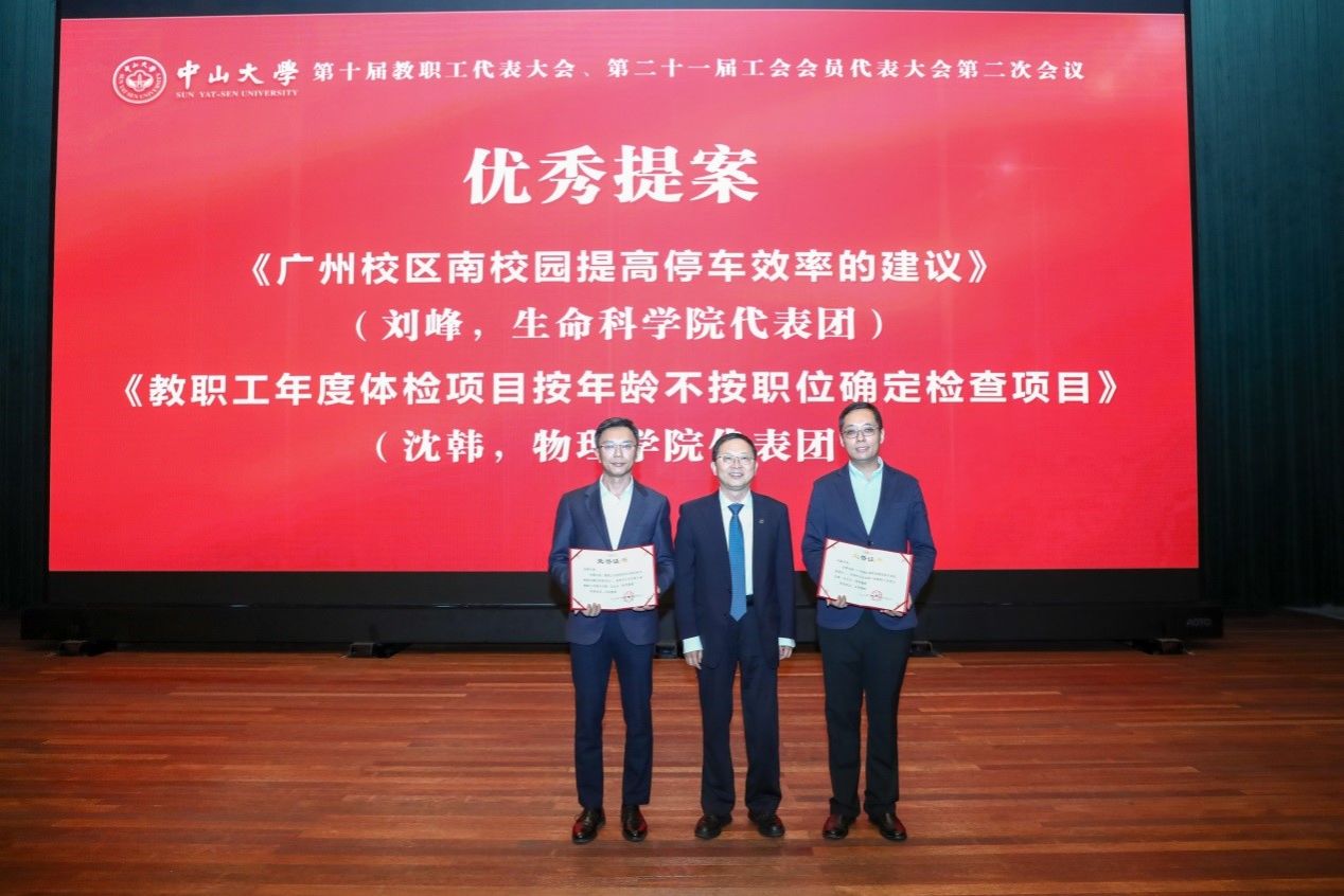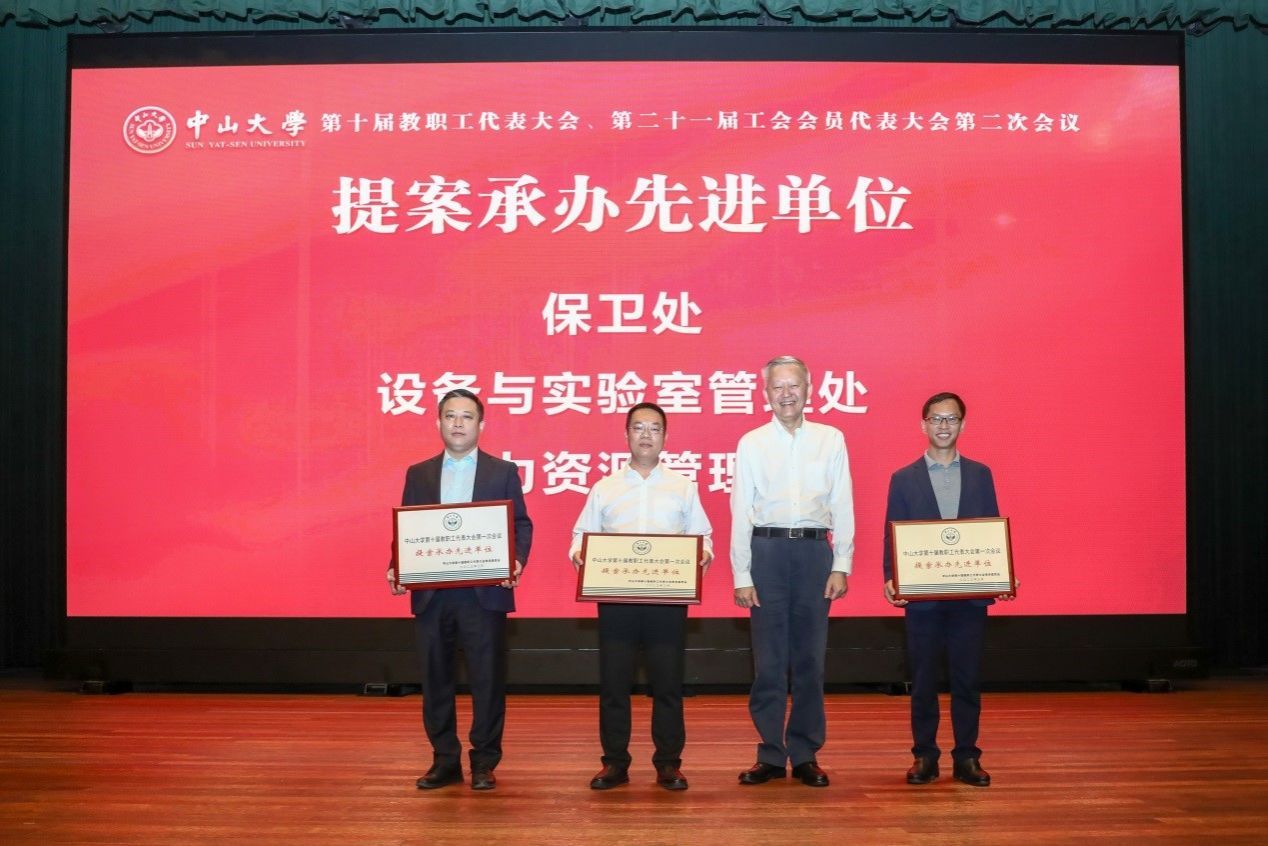 本次大会还对荣获十届一次教代会“优秀提案”的生命科学学院刘峰代表、物理学院沈韩代表,获“提案承办先进单位”称号的保卫处、设备与实验室管理处和人力资源管理处进行了表彰。