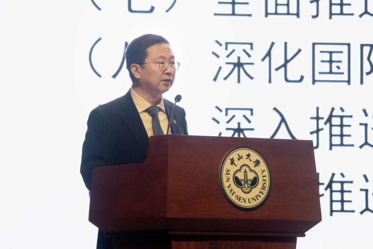 高松校长代表学校向大会作工作报告。他指出,2022年学校党委带领全校师生员工坚持以习近平新时代中国特色社会主义思想凝心聚力,深入学习贯彻党的二十大精神,深刻认识“两个确立”的决定性意义,增强“四个意识”、坚定“四个自信”、做到“两个维护”,全面贯彻党的教育方针,始终坚持以立德树人为根本任务,坚持“四个面向”引领,坚持以学生成长为中心,推动学校事业迈向高质量发展新阶段。他重点介绍了学校过去一年在党建和思想政治工作、人才培养、发展规划与学科建设、科学研究与社会服务、人才队伍建设、国际合作与交流、校园建设与公共服务、文化建设等方面的发展情况,并向大会报告了2023年重点工作计划和民生事项安排。高松校长强调,2023年是全面贯彻党的二十大精神开局之年,也是实施“十四五”规划承上启下的重要一年,即将迎来学校的百年校庆。我们要弘扬百年中大精神,赓续优良办学传统,坚持以习近平新时代中国特色社会主义思想为指导,为高等教育发展、推动中国式现代化建设进程贡献中大智慧和力量,向百年校庆献礼。
