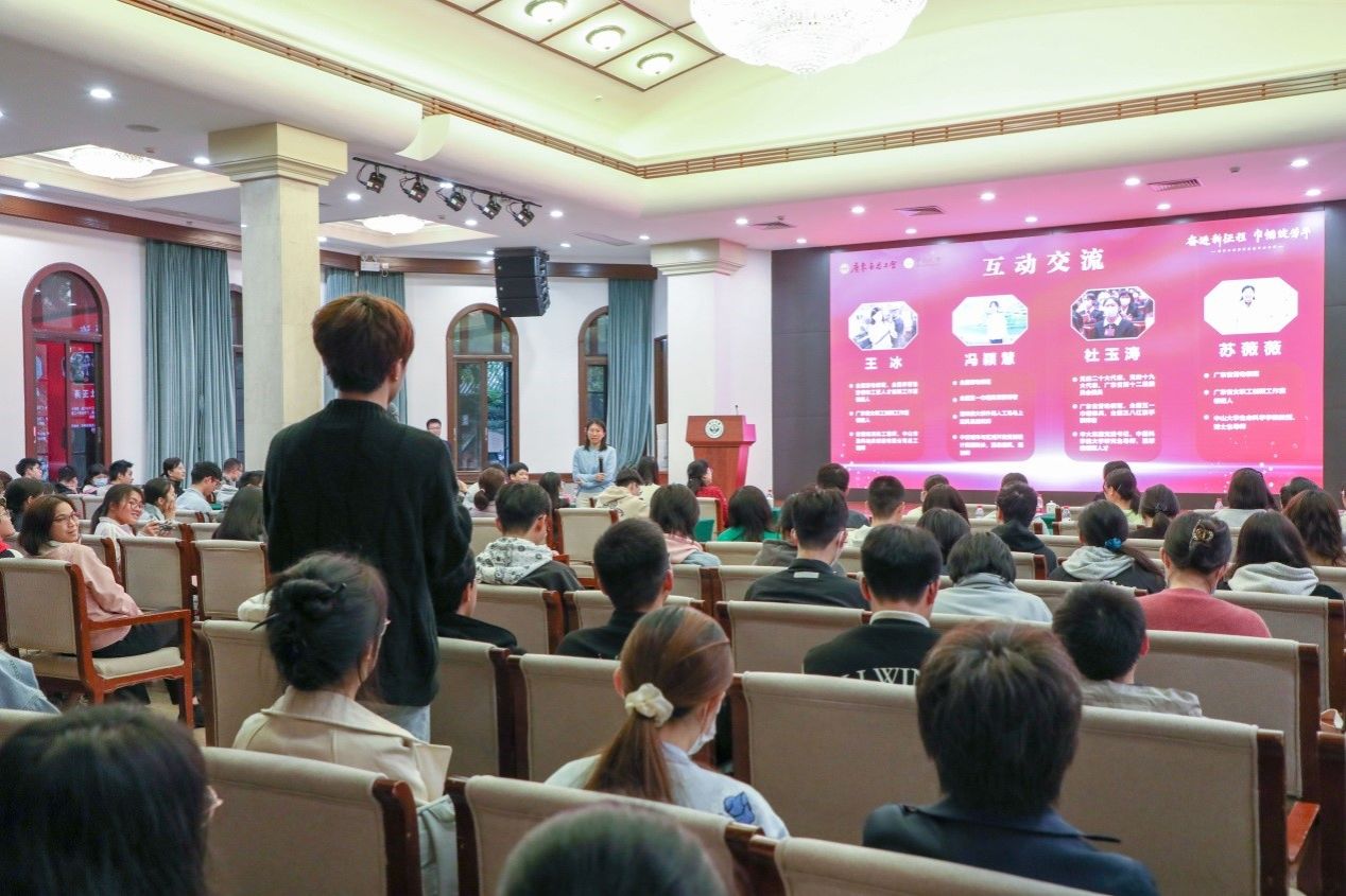 全国劳动模范,全国示范性劳模和工匠人才创新工作室、广东省女职工创新工作室领衔人,中山市盈科轴承制造有限公司总工程师王冰分享了自己执着追求、精益求精,立志让小小轴承成为中国骄傲的动人故事。全国劳动模范、全国五一巾帼奖章获得者,中交城市与区域开发规划设计院副院长,副总建筑师、规划师冯颖慧讲述了她作为港珠澳大桥外海人工岛岛上建筑总建筑师及技术负责人,与团队一起舍小家为大家,攻坚克难、拼搏奋斗,圆满绘就世纪工程蓝图的难忘经历。党的二十大代表,广东省劳动模范,深圳华大生命科学研究院党委书记杜玉涛结合自身经历分享了我国生物技术领域尤其是基因检测技术的发展,鼓励青年师生要不负使命、逐梦未来。全国五一巾帼标兵岗带头人,广东省劳动模范,广东省女职工创新工作室领衔人,中山大学生命科学学院教授、博士生导师苏薇薇分享了自己教书育人,将个人科研目标与国家社会需要相结合,潜心钻研、快乐创新,用二十余年探索化橘红标准建设,以科技成果助力脱贫攻坚和乡村振兴的体会。