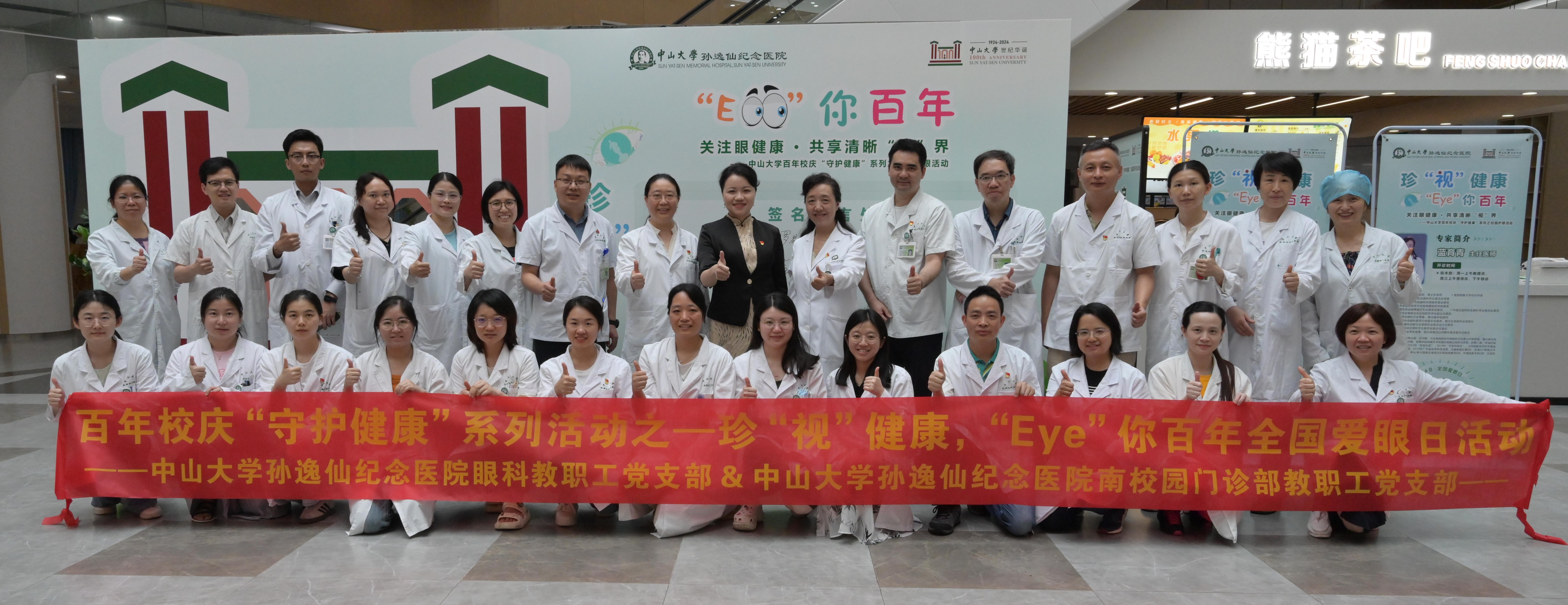 本次活动在中山大学百年校庆办公室罗晶主任、中山大学孙逸仙纪念医院党委古小红书记,中山大学孙逸仙纪念医院眼科教职工党支部书记兼眼科主任蓝育青教授、中山大学孙逸仙纪念医院南校园门诊部教职工党支部书记兼副主任雷娟教授,以及现场广大师生的共同见证下拉开序幕。