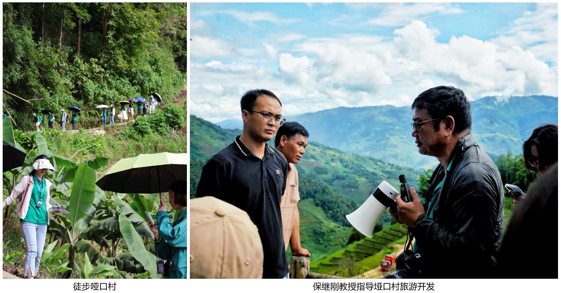 7月11日至12日,研学团到达阿者科核心景区,师生们不仅欣赏了哈尼古歌非遗表演,还亲身体验了哈尼家宴的独特魅力,并通过自由参观与游览,全面感受了阿者科景区的丰富旅游资源与项目特色。在此过程中,师生们积极与当地村民开展深入交流,从资源评价、游客行为、景区管理、社区参与、商业模式、制度设计和旅游可持续等七个方面开展深入调研,并在梯田博物馆参观遗产保育展览。其后,研学团去了垭口村,垭口村是继阿者科之后对“旅游吸引物权”的又一试点村,保继刚教授现场对阿者科计划在垭口村的可复制性和如何进行乡村旅游开发作了进一步的指导。