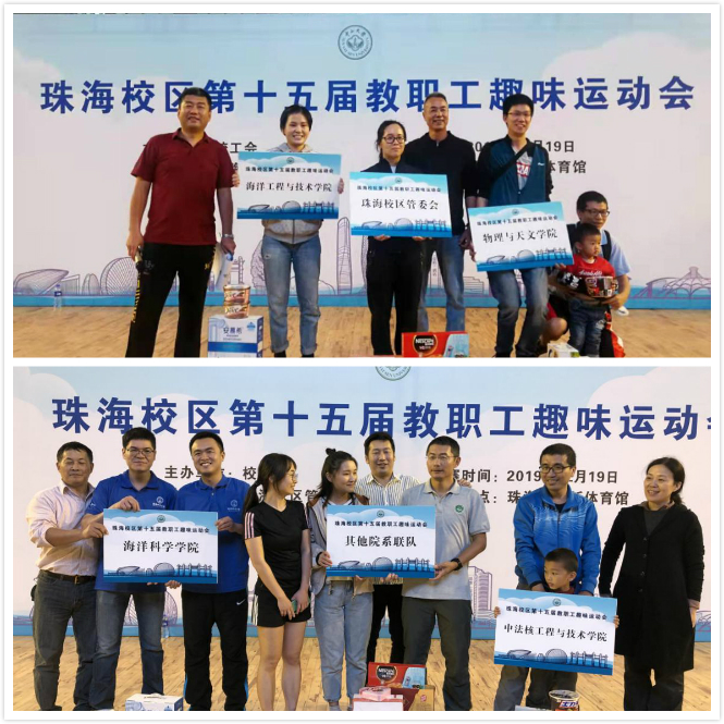 经过了近三个小时的激烈争夺,珠海校区管委会、海工、海科和化工学院等代表队取得了优异的成绩,在获得了欢乐的同时也收获了丰厚的奖品。下午五时,本届教职工趣味运动会在一片欢声笑语中圆满落幕!
