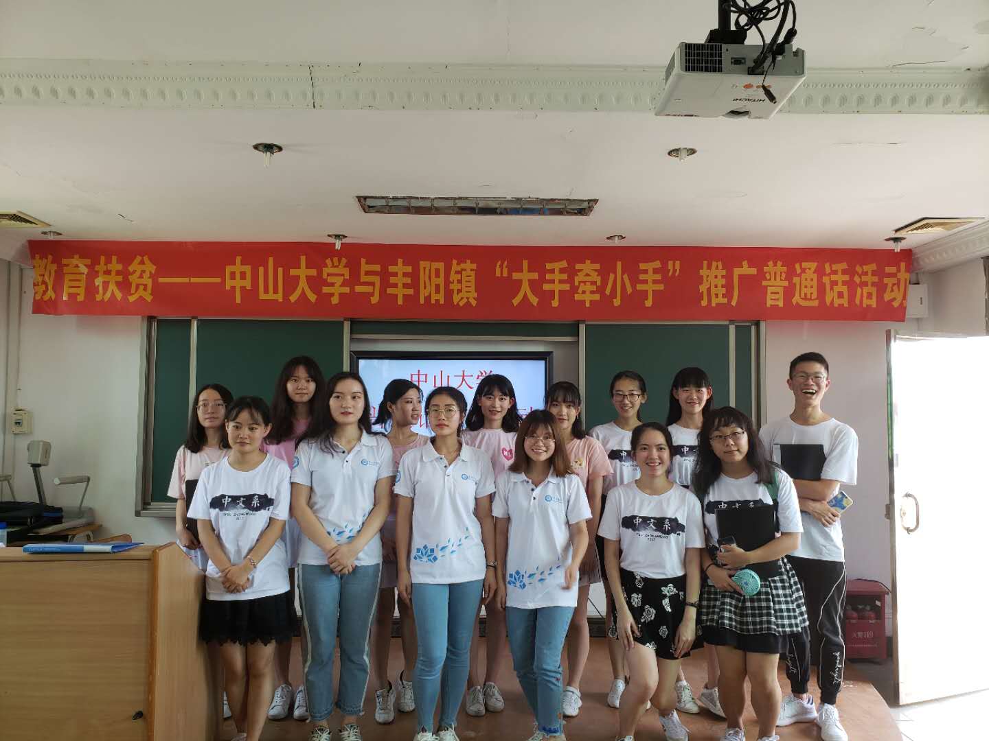 中山大学出版社、孙逸仙纪念医院、校扶贫工作组、驻村工作队、中文系及资讯讯管理学院共32名师生,在共青团连州市委员会、丰阳镇领导同志的陪同下,赴丰阳镇中心校开展了“大手牵小手”推广普通话活动。校出版社、校扶贫工作组代表学校为丰阳镇中心校捐赠了758册价值一万五千元的书籍,孙逸仙纪念医院捐赠了一台钢琴。丰阳镇中心学校校长代表学校接受捐赠,并对我校以普通话推广活动为契机开展的教育扶贫表示肯定和感谢。捐赠仪式后,中文系、资讯管理学院的同学精心准备和表演了《闪光的梦想》、《少年中国说》等节目,获得了参加活动师生的阵阵掌声。最后,丰阳镇中心学校互动表演了《童心说丰阳》,展露了当地青少年对丰阳的热爱和建设丰阳的信心,也充分证明了以普通话推广为契机、以教育扶贫为核心的系列活动开展的重要意义。系列活动的开展让当地同学们感受到了社会的温暖,图书、钢琴的捐赠丰富了当地学生的课余生活、开拓他们的视野,有助于以点带面改变当地家庭落后观念,夯实了当地全员脱贫基础。