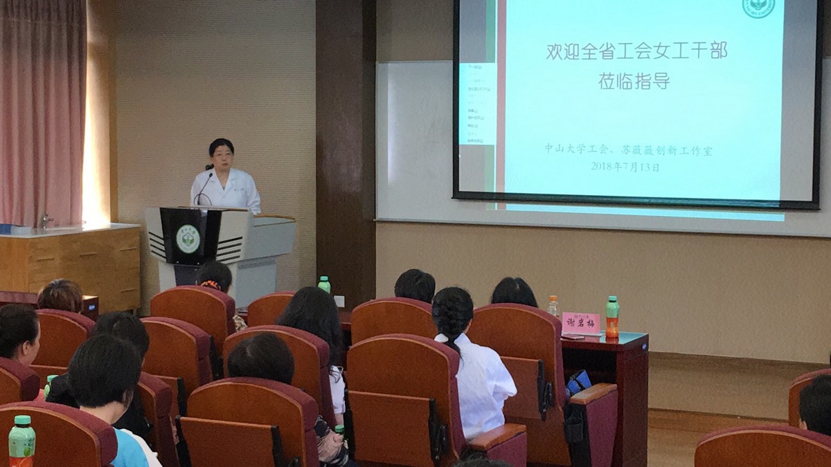 7月12-13日,广东省总工会在广州召开全省工会女职工部长会议,总结上半年女职工工作,部署下半年工作,并进行女职工创新工作室创建工作经验交流及成果展示。7月13日,省总工会女职工部黄珣部长、省教科文卫工会谢岩梅主席以及全体与会人员50多人实地参观了中山大学苏薇薇教授创新工作室,我校工会女教职委副主任张艺教授及校工会工作人员陪同参观并与省工会女工干部就女工工作进行了热烈的讨论和交流。