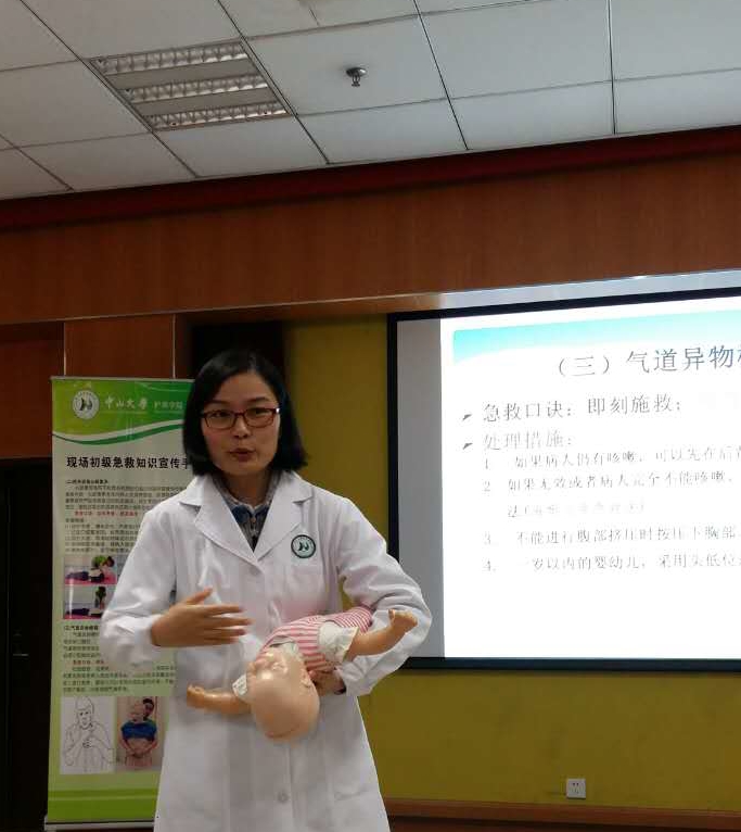 本次培训活动内容丰富,首先药学院工会黄河清主席介绍了校工会开展“精品活动”项目的情况以及公众急救知识技术培训的重要性。护理学院急救护理学赵娟娟老师为大家进行了居家和公共场所常见意外伤害的现场急救知识,并以黄金4分钟决定一个人的命运来讲解现场急救的重要性。赵老师从突发意识丧失、心肺复苏、气道异物梗阻、溺水、烧烫伤等常见急症及急救措施出发,结合急救的相关道具,现场向大家演示如何进行心肺复苏以及如何对气道异物梗阻进行急救。