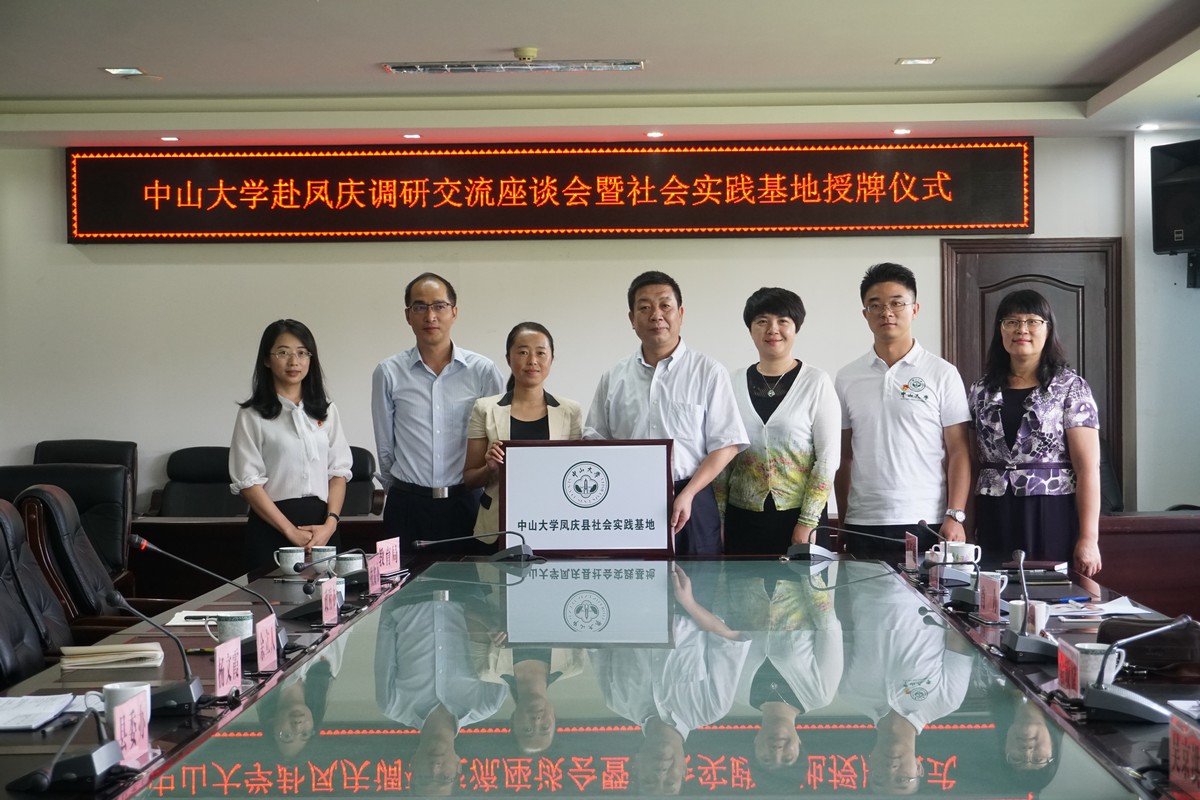 8月21日至25日,由校党委副书记、扶贫工作领导小组副组长、校工会主席余敏斌教授带队,我校定点扶贫工作组一行19人赴云南省凤庆县,与凤庆县人民政府各部门领导座谈交流帮扶工作,举行中山大学社会实践基地授牌仪式,并围绕“医疗帮扶”、“教育帮扶”和“非遗扶贫”三方面的帮扶工作重点,先后前往凤庆县人民医院、鲁史镇、凤庆县第二完全小学、凤庆县特殊教育学校、凤山镇落星村、凤山镇美女山完全小学、滇红集团茶科院及郭大寨乡团山村等地开展帮扶和调研。