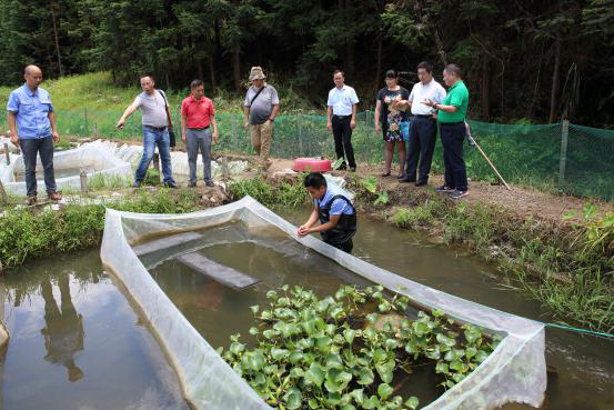 调研组一行还考察了我校定点帮扶柯木湾的各个扶贫项目。在产业扶贫项目宽体金线蛭养殖基地现场,所有的养殖塘已全部投苗生产,半个月前投下的0.2克的满月苗现在已到2到3克,长势喜人。余敏斌副书记指出选对产业扶贫项目是第一步,接下来的管理是项目成功的关键。