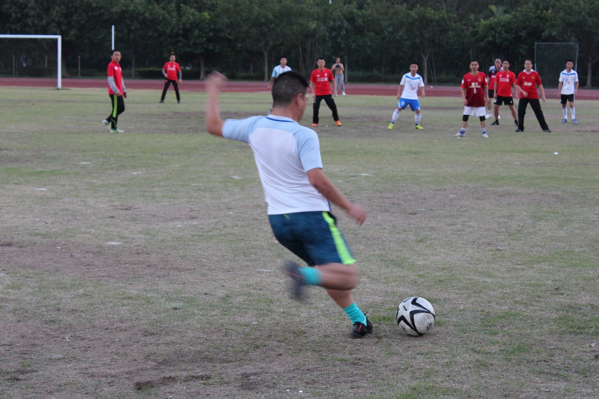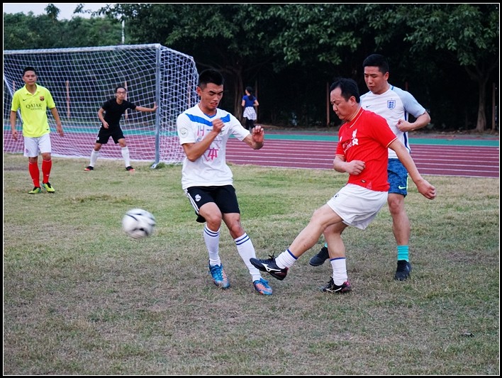 这些踢球者,是中山大学广州校区东校园的教工们。他们或者刚刚从课堂上走出,或者刚刚结束了一场会议,或者刚刚完成一天的行政工作,无论之前如何忙碌,每周一下午五点,他们都会出现在球场,和熟悉的球友们踢上一场比赛。在东校分工会的支持下,教工们组建了一支常设业余足球俱乐部,包括计算机学院、工学院、传播与设计学院、超算中心等单位的教工近50名。2016年初,校工会精品立项项目资助东校教工足球俱乐部进行了二十余场足球比赛。