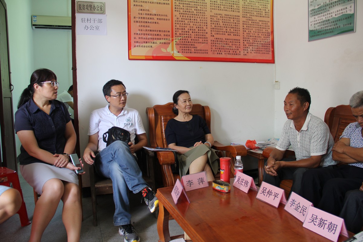 9月13日,李萍副书记首先和柯木湾村干部、自然村组组长进行了座谈,了解各村的基本情况和贫困户情况,针对致贫原因分析脱贫工作思路。在扶贫工作对接动员会上,校工会常务副主席吴京洪介绍了此次扶贫工作的整体目标和分步实施计划,配合连州市丰阳镇规划思路,发挥我校在学科上的优势,把柯木湾村打造成观光生态、民宿旅游村。根据柯木湾村的实际情况,除了政策性保障兜底脱贫之外,精准针对有劳动能力的贫困户群体开展一对一帮扶,最终实现全部脱贫。校党委李萍副书记在会上用粤语发表了“接地气”的讲话,她强调扶贫工作体现了当下党和政府消除贫困人口坚定决心,中山大学对柯木湾村的帮扶是“真心实意、尽心尽力”的帮扶。她指出柯木湾村自然环境优越,当地政府正打造连片村组旅游线路,带动农家乐和民宿发展,希望村民们首先树立卫生意识、养成卫生习惯,保护好村里的环境和资源,在村干部、村长的带领下,通过勤奋劳动,与我们共同努力,让明天的生活越来越美好。随后,李萍副书记与柯木湾村理事会单独召开了座谈,理事长吴庄伟,理事吴仲平、李金民、吴新朝等人参加了座谈。李萍指出村理事会也是村民群众中的“主心骨”,希望他们能为扶贫工作出谋献策;做好群众的思想和教育工作,对各项扶贫项目管理好,维护好。李萍副书记还抽空看望慰问了贫困户胡忠建,详细了解了他目前的生产生活情况,在了解到胡忠建夫妇年迈多病,儿子儿媳也因事因病无力照顾他们。她叮嘱扶贫工作队要及时将国家的政策传达给各贫困人口,更好地为村民服务。时值中秋来临之际,李萍副书记代表学校向驻村干部李晓超、沙敏进行了慰问,肯定他们的前期工作,勉励他们克服各种困难,主动贴近群众,继续做好各项定点扶贫工作。