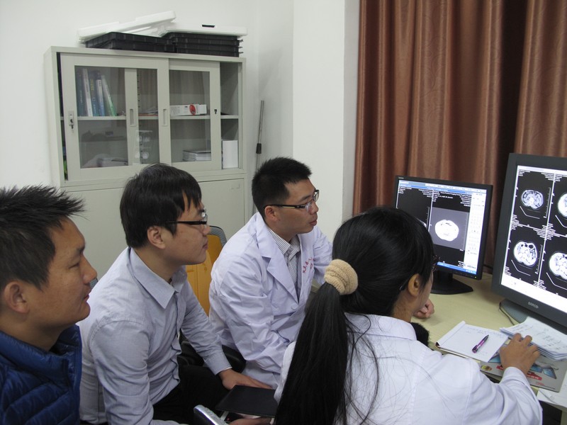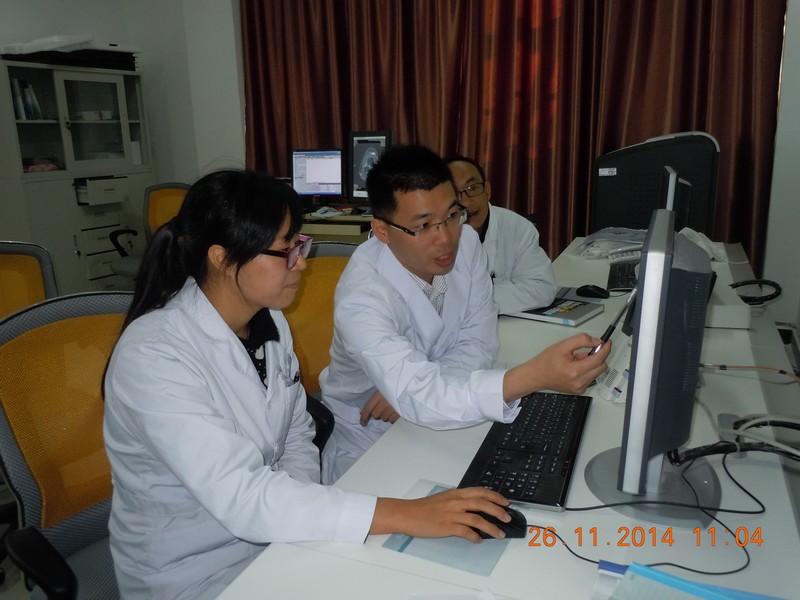 医疗队员泌尿外科曹明欣主治医师与高振华副教授在受援医院泌尿科进行临床影像联合会诊