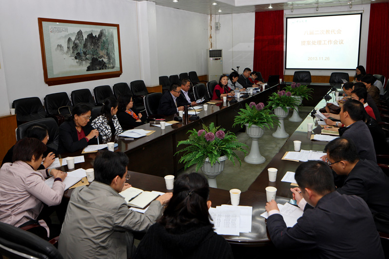2013年11月26日,我校八届二次教代会提案处理工作会议在南校区梁銶琚堂第一会议室召开,会议由校党委副书记、工会主席李萍教授主持,校党委办公室、校长办公室、人事处、保卫处等21个提案承办单位相关负责人参加了会议。
