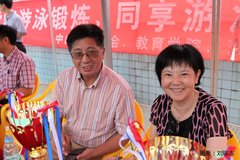 本次比赛由校工会、教育学院、离退休工作处联合主办,教育学院体育系、教职工游泳协会、政务学院分工会承办。共有17个代表队,252名选手参加。比赛设20个项目,分8个年龄组、63个轮次进行角逐。碧波池内,运动员奋力向前,水花翻飞;看台上观众的加油声此起彼伏。当团体4×50米混合泳接力项目中游出2分34秒61的好成绩时,游泳场内的气氛达到了高潮。