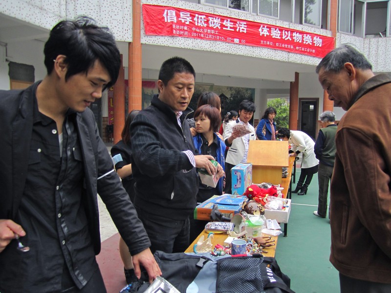 12月31日,为响应党委号召“为民服务 创先争优”活动,校工会党支部联合校工会工会小组举办“低碳生活,以物换物”活动。经过两个星期的报名和准备工作,活动在南校区活动中心如期举行。当天交换的物品有摄影器材、烤炉烤箱、书籍、手工艺品、服饰、首饰、玩具等。活动伊始,现场便人头攒动,场面异常火爆。物物交换,淘宝是淘乐趣,交换是交朋友;物物交换,崇尚的是环保,交换的是节俭。通过举办这样的活动,让原本买来却一直被搁置的物品发挥其相应的作用,同时传递了崇尚低碳、崇尚环保的理念,深化了老师们对和谐型环境、节约型校园的自觉认同,受到广大教职工的欢迎。