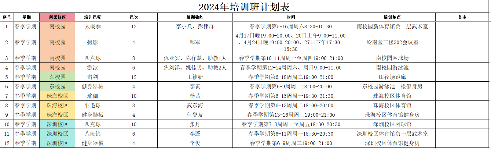 中山大学2024年春季教职工文体培训班即将开班