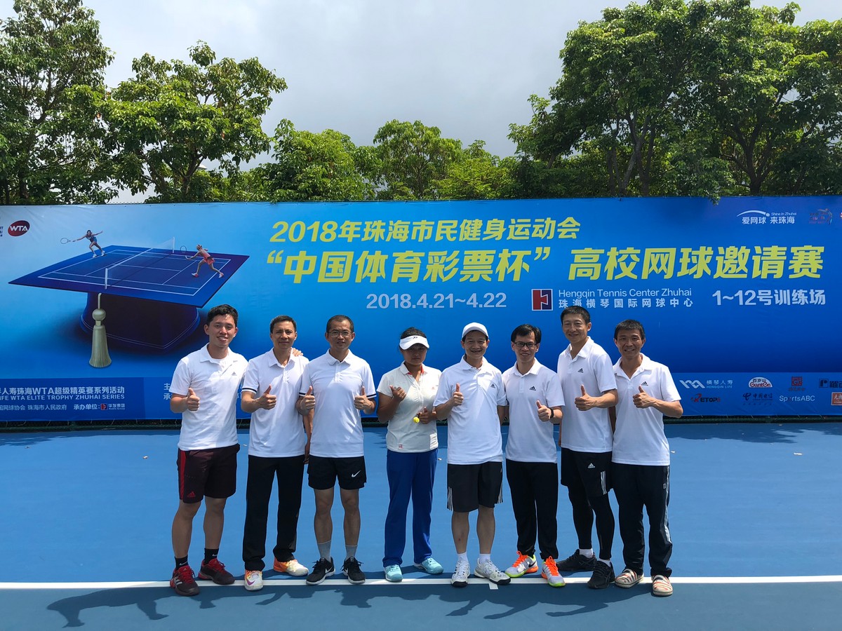 由广东省教育厅体卫艺处、珠海市文化体育旅游局和教育局组织,素有高校界职业网球赛事之称的2018年珠海市民健身运动会“中国体育彩票杯”高校网球邀请赛于4月21日上午在珠海横琴国际网球中心开打,赛事持续两天。本届比赛有来自粤港澳三地,中山大学、香港中文大学等16所高校,近250名师生参与,竞争空前激烈。最终,经过两天鏖战,我校教工组代表队在16所高校中取得了第二名的好成绩。