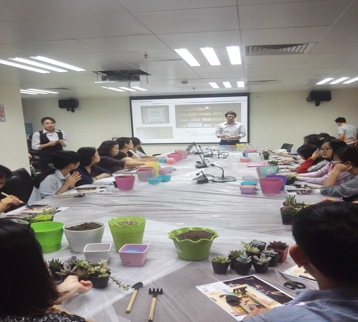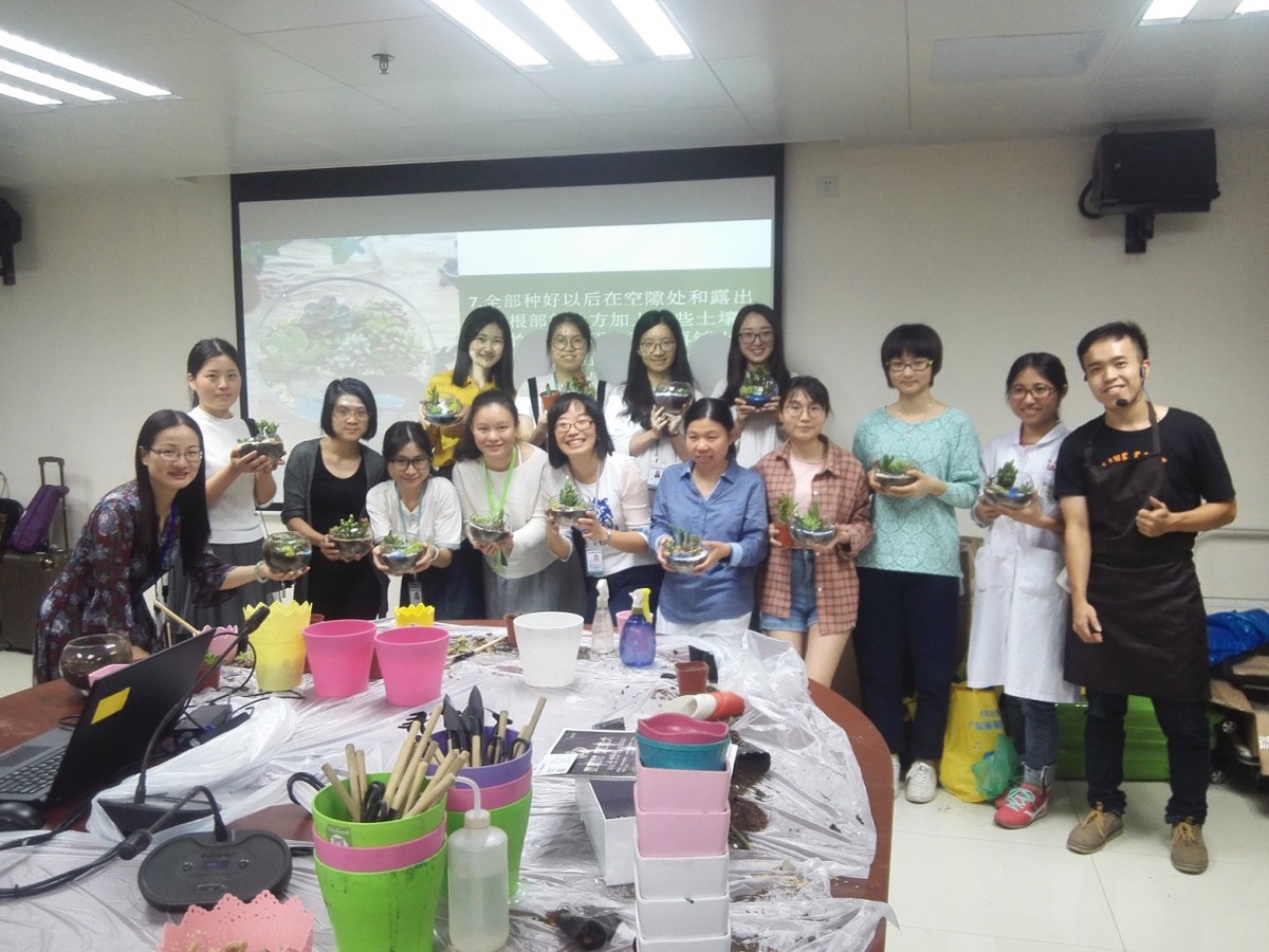 听完多肉植物的基本知识后,到了现场栽培环节。大家跃跃欲试,迫不及待地动起手来,在老师的指导下把植物种在了花盆里。“老师,花根需要埋多深”,“老师,我的花放不下怎么办”,“老师,这花如何晒太阳”,“老师,多久浇一次水,会不会有病虫害”?大家在亲手种植中遇到了很多问题,老师一边帮忙调整一边耐心解答着疑问。当一盆盆可爱的多肉植物展现在面前时,职工们捧着自己亲手种植的多肉植物不禁赞美道:“太漂亮了!太可爱了!”