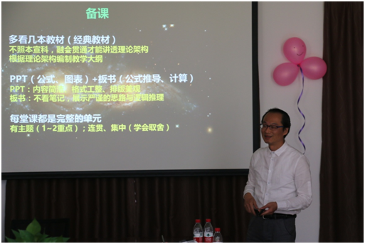 叶贤基教授作为深受学生喜爱与认同的资深教师,从备课与讲课两大方面为青年教师分享经验。叶老师建议老师们在专业教学外,要多读一些经典教材,PPT要做到内容简洁、格式工整、排版美观,做板书时要做到不看笔记、展示严谨的思路与逻辑推理,保证每堂课都是完整的单元,要有独创的见解、适当加入最新科研进展;讲课时要注重仪表和姿态、以及与学生的互动,在合适的时间讲述一些科研工作中的领悟。