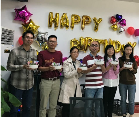 培训会后,学院分工会借此契机在现场举办 了10月份的教工生日会活动。6位当月生日的教工在大家祝福的生日歌中一起许下美好心愿,切蛋糕。李珅书记、林伟鹏副院长为寿星们送上彩色萌肉盆栽,祝愿他们永远开心萌萌哒。寿星们惊喜地说,这个集体生日过得很有意义,很暖心,也很难忘。生日会上,教工们谈笑风生,交流工作心得,畅谈生活趣事。