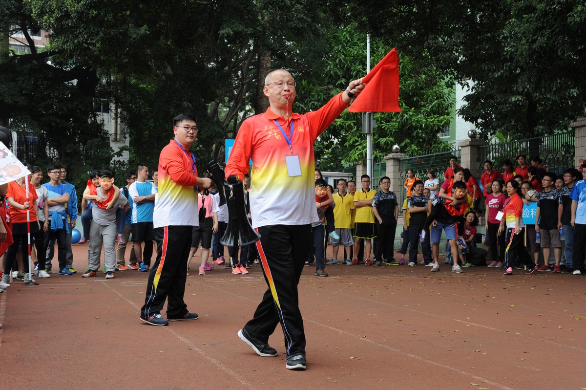 本届趣味运动会倡导“放松、寻乐、加油、充电、联谊、聚力” 的精神,旨在丰富教职员工的文化生活,增进交流,愉悦身心,展示活力和风采。运动会共设六个比赛项目:八戒背媳妇、螃蟹接力跑、集体跳绳、猴哥托桃、情侣六足跑和趣味足球。虽然天公不作美,比赛期间乌云密布,偶尔还飘落小雨滴,但这丝毫没有影响参赛队伍的比赛热情,不少队伍早早来到运动场,争分夺秒练习比赛项目,紧锣密鼓进行赛前热身。在八戒背媳妇比赛中,男队员头戴眼罩和八戒面具,女队员手持大红绸带,在八戒背上指挥着前进的方向,滑稽的造型,有趣的媳妇,逗得观众们捧腹大笑;在猴哥托桃项目中,各参赛队为争取时间各展所长,跑得又快又稳的比赛队员赢得阵阵喝彩。参赛队员中不乏处室领导,平时严肃、严谨的他们也全情投入到比赛中,为年青队员作了很好的表率。前来观战的啦啦队员都摇旗呐喊、欢呼雀跃,为自己的队伍加油助威。70多岁刘伯齐裁判长的哨子声、啦啦队的呐喊声,此起彼伏,络绎不绝。摄影师们忙碌地按着手中的长枪短炮,为大家记录下每一个精彩瞬间。