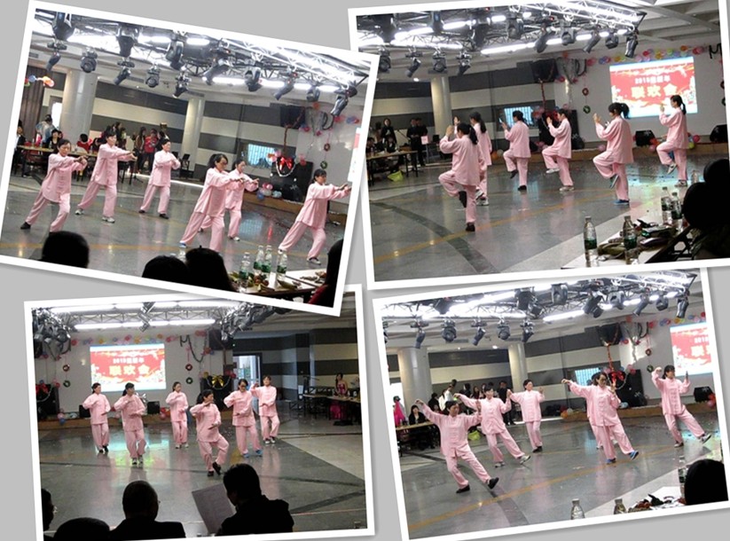 恰逢财务处举行迎新年联欢会,在指导老师吴平的带领下,职工们积极踊跃地投入到联欢会太极拳节目表演的排练中。12月26日,节目在联欢会上成功演出。饱满的精神、统一的衣着、整齐的动作,精彩呈现出学员们的锻炼成果。伴着轻柔的音乐,一个个娴熟的攻防转换和招式拆解,每一名队员全情投入,动作轻柔舒缓,拳演之间,动静结合,刚柔并济,学员们挥洒自如、行云流水风采更博得了现场观众的阵阵掌声。坚持练习太极拳运动有助于提高教职工的整体素质,弘扬太极拳理念,真正实现“每天锻炼一小时,健康工作四十年,快乐生活一辈子”。