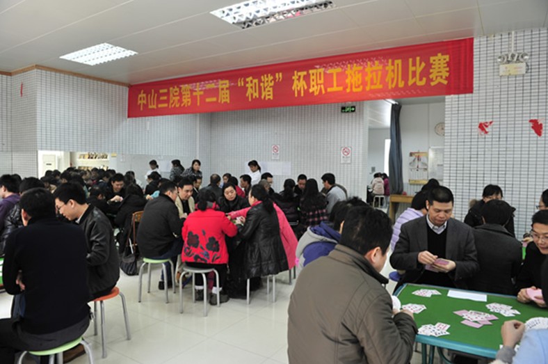 扑克牌拖拉机比赛集趣味、竞技、休闲于一体,一直以来都是一项深受职工喜爱的竞智体育项目,医院已连续十二年开展此项活动。比赛不仅活跃和丰富了职工的业余生活,增进了同事之间的相互的沟通与交流,同时也提高了团队的凝聚力。