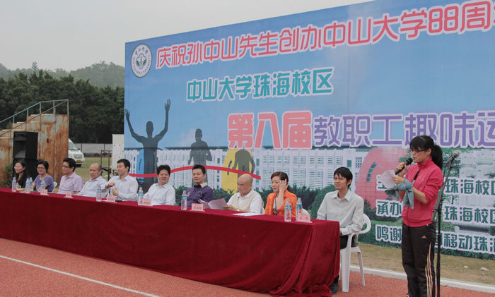 2012年11月15日下午,我校珠海校区第八届教职工趣味运动会在田径场拉开帷幕。本届运动会受到珠海校区领导的高度重视和支持,珠海校区党工委书记郝登峰,党工委副书记(兼)、学工办主任林俊洪,珠海校区分工会主席(兼)、党政办主任胡海峰以及校区分工会、各职能部门、各院系领导出席了本次开幕式,并由郝登峰书记亲致开幕词。