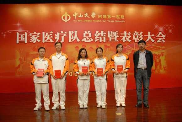 广东省卫生厅党组副书记亓玉台为受表彰的医疗队员颁奖