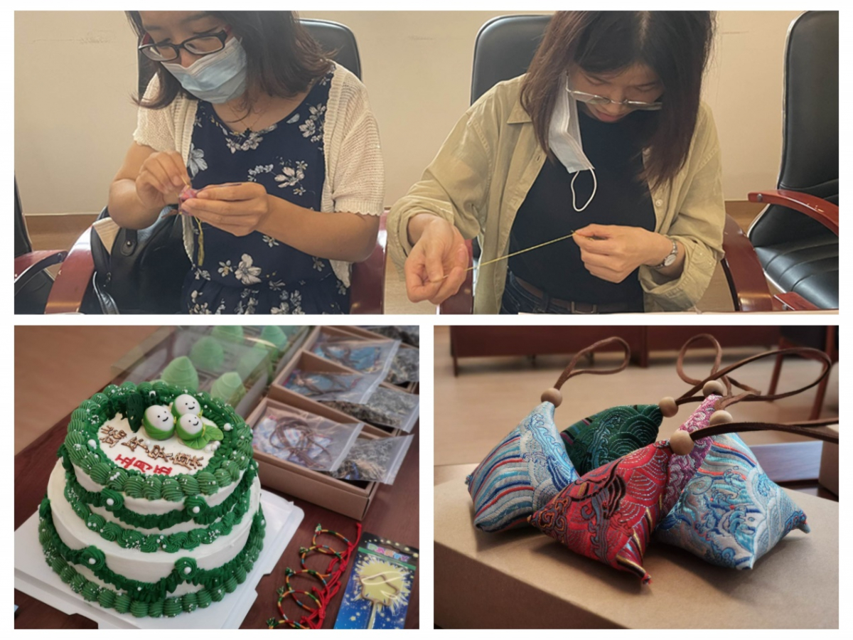 活动首先是自我介绍小游戏环节,热络气氛、增进了解、促进交流。在午餐话海院环节,教职工们了解了近期学校、学院大小事,每位教职工都在为学校学院发展贡献力量。之后,李春荣书记代表学院为5-6月生日寿星送上专属生日贺卡,大家一起唱生日歌、分享蛋糕。临近端午佳节,学院教职工积极响应就地过节的号召,一起品尝香粽、手工DIY制作香囊、忆家乡端午事,品味端午,传承文明。