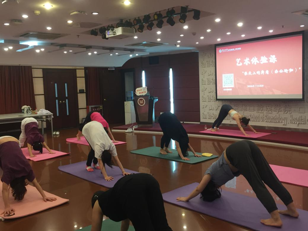 11月20日,在医院八楼讲学厅,光华舞蹈俱乐部邀请专业的瑜伽老师指导,大家得以在忙碌的工作中放松身心、缓解疲劳。