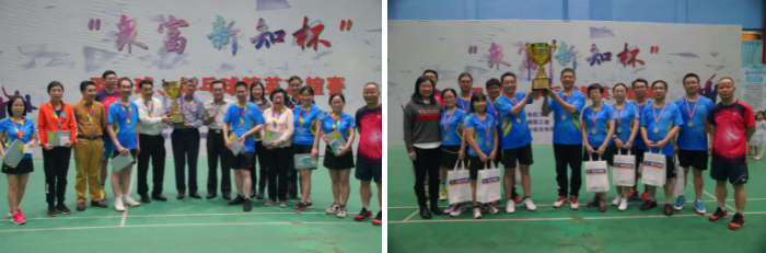 陈新滋院士、赵国雄博士和清远高新区周歧贤主任首先为本次比赛开球后,接着紧张的比赛迅速开始。乒乓球团体赛在区敬华老师的带领下,双方七组选手开始团体赛;与此同时,羽毛球团体赛也在胡文浩院长的带领下,共七组选手进行了对抗。经过一个上午的激烈角逐,药学院队获得了乒乓球团体赛冠军,清远高新区获得了羽毛球团体赛冠军。通过紧张激烈的比赛,药学院与清远高新区增进了解,加深了友谊,最后比赛圆满落下帷幕。