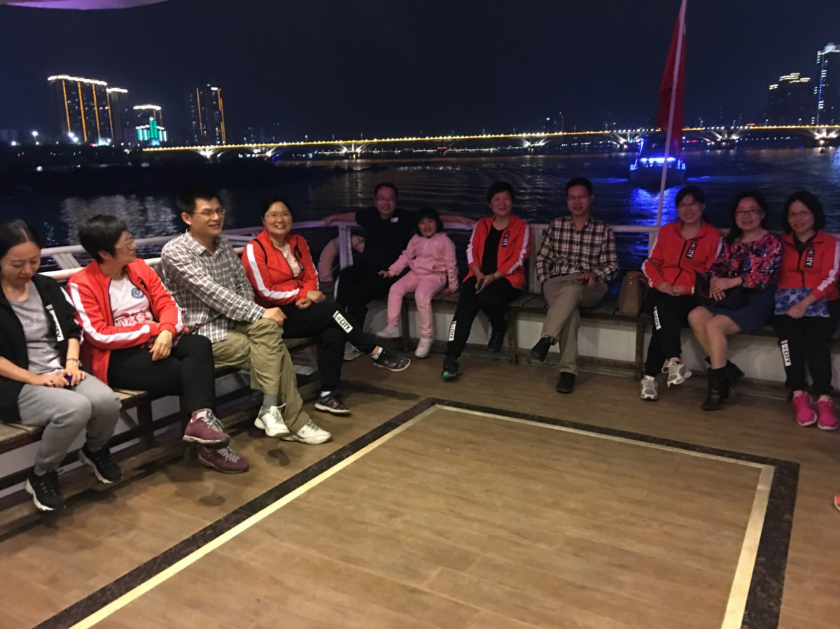 来到清远不能不游江,傍晚大家在清远市北江码头登上游船,开启北江夜游之旅。随着游船的缓缓移动,大家的心情也慢慢放松下来,阵阵江风吹来心情舒畅,江面越来越开阔,江风凉爽,空气清新。教职工们在船上欣赏美景,与同事和家人畅谈感想,与孩子们一起嬉戏,仿佛回到幸福的童年时光。