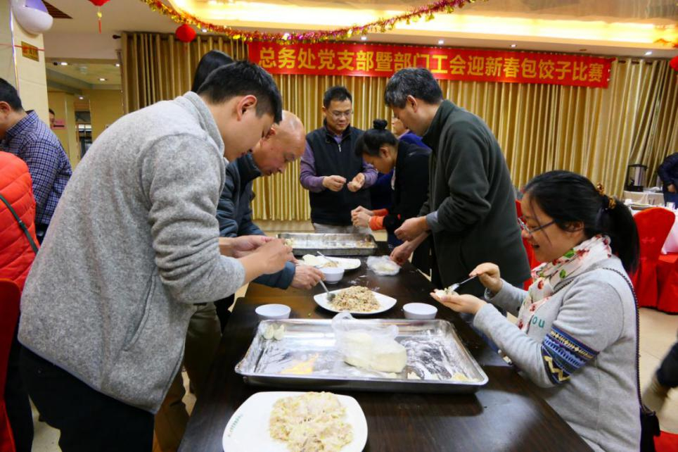 1月18日晚上,总务人分组进行了包饺子比赛,各组分工合作、各显神通,南北派饺子、金鱼饺、美人扇等等包法层出不穷,充分展示了总务人的心灵手巧和团队风采。本次比赛评出了最美整体造型奖、最快包饺子奖、最佳创意奖、最好卫生奖、最佳团队协作奖,增强了大家的团结意识,提升了团队凝聚力。