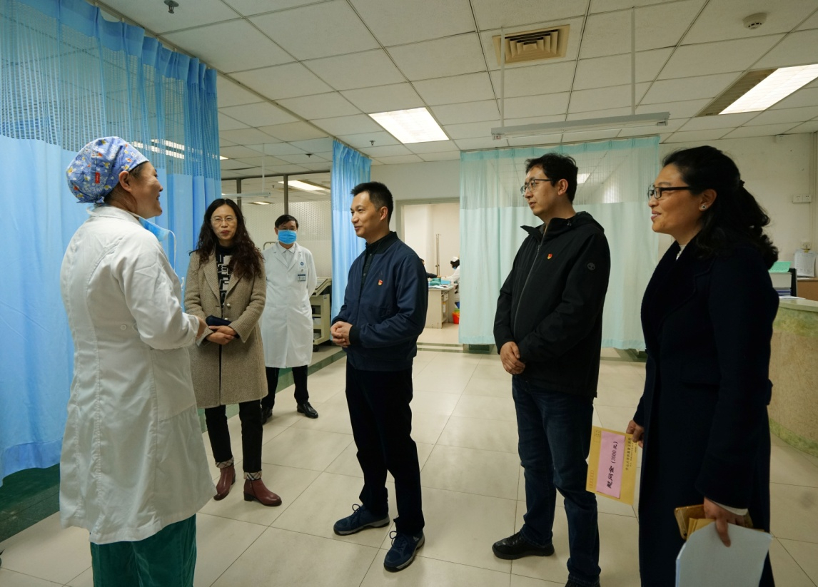 1月17日,春节前夕,附属五院工会慰问了患大病、重病职工。院党委书记林伟庭、工会主席孙巧妹和党办副主任杨剑等参加了活动。