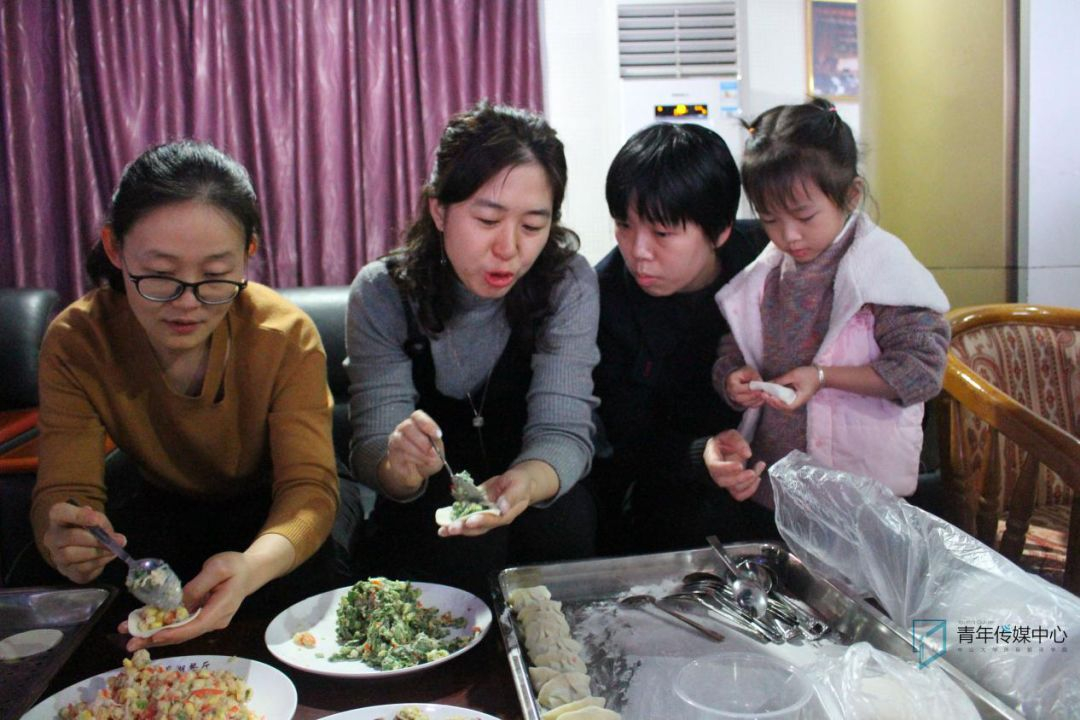 在活动正式开始前,许多老师已抵达现场,开始包起了饺子,为庆祝冬至做准备,引得许多外教围观求教。在教与学的过程中,桌前混杂着各国口音,屋内欢声笑语渐起,洋溢着喜悦。