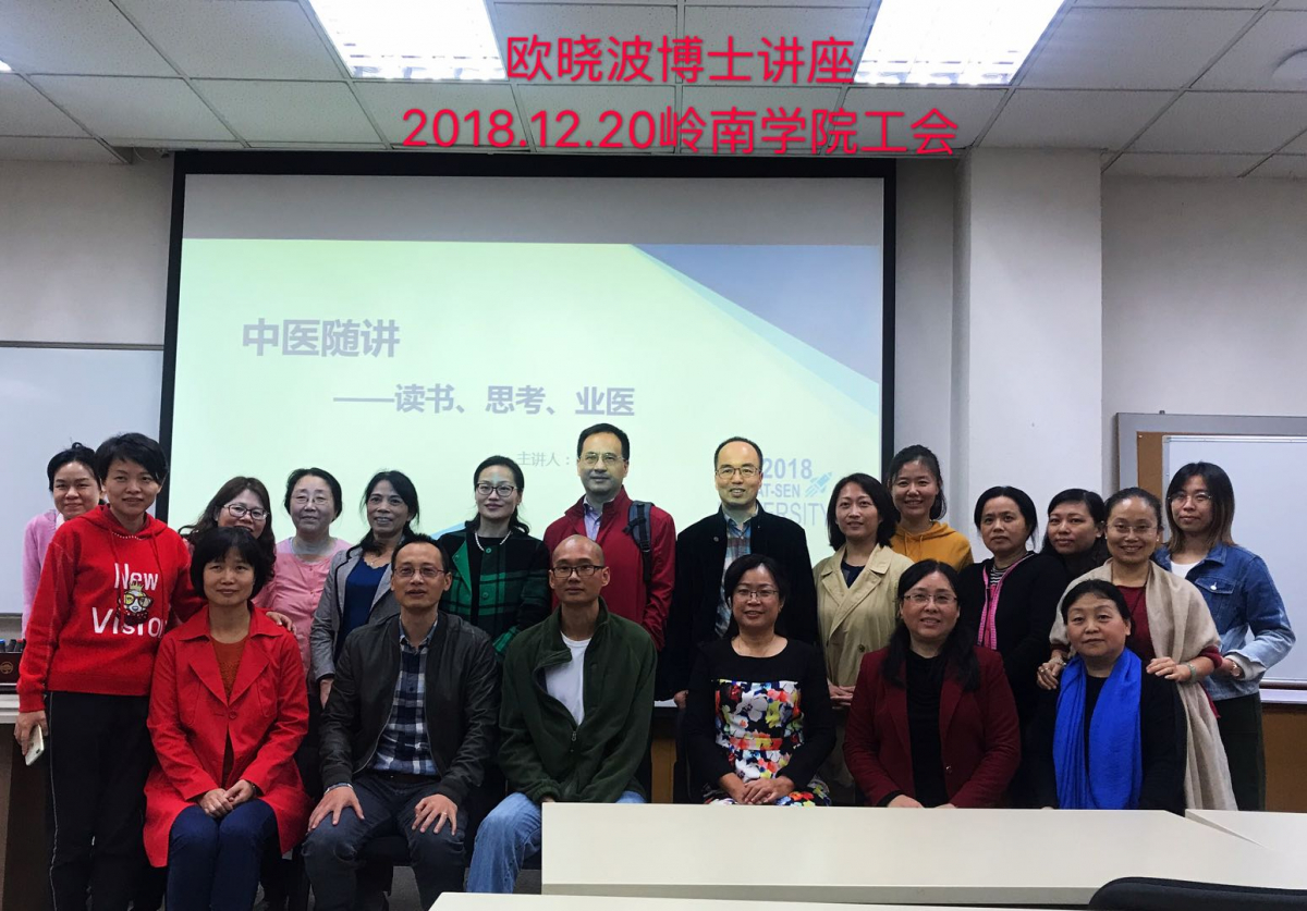为了让学院教职工更好地了解古中医,运用古中医知识指导自己的生活,用正确的古中医养生观养护身心,有效地在日常生活和工作中预防疾病、维护自己和全家人的健康,岭南学院分工会于12月20日举办了“中医随讲”古中医养生讲座。