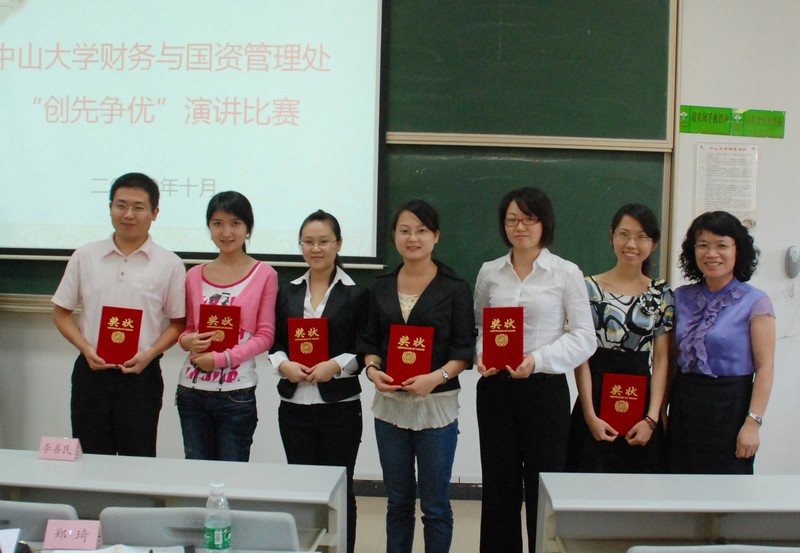 金秋十月风送爽,多彩绚烂丰收节。为纪念建党八十九周年,推动中山大学财务与国资管理处创先争优活动深入开展,进一步加强文化建设,财务处于10月21日开展了别开生面的创先争优演讲比赛。比赛由劳楚华副处长主持,李善民处长、各位副处长、工会委员以及特邀嘉宾中山大学中文系