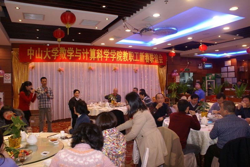元月8日,数计学院在康乐园蒲园餐厅宴请84名离退休教职工,同贺2012年新年和壬辰龙年春节。学院李伯军书记、程月华副院长,分工会王其如主席、赵勤辉副主席(院办主任)等出席。宴会由王其如主席主持。李伯军书记,学院前副院长、离退休负责人
